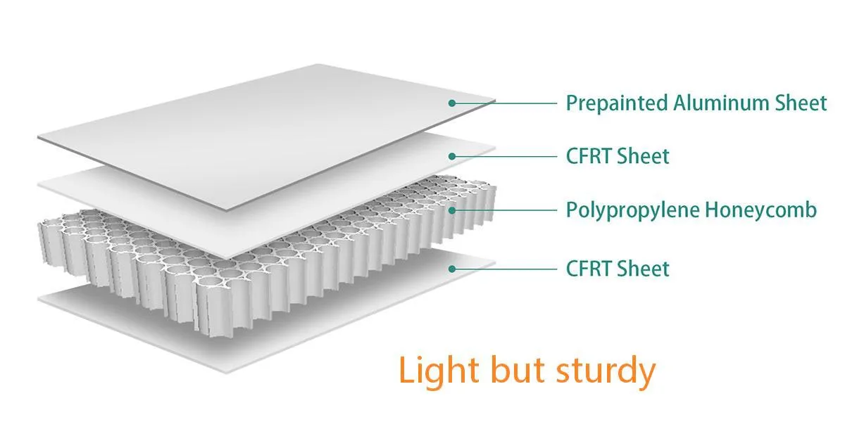 ●De honingraatoplossing: extreem lichtgewicht. Onze composietpanelen bieden een gelijke of grotere sterkte dan staal terwijl het lichaamsgewicht met 30% tot 50% wordt verminderd.